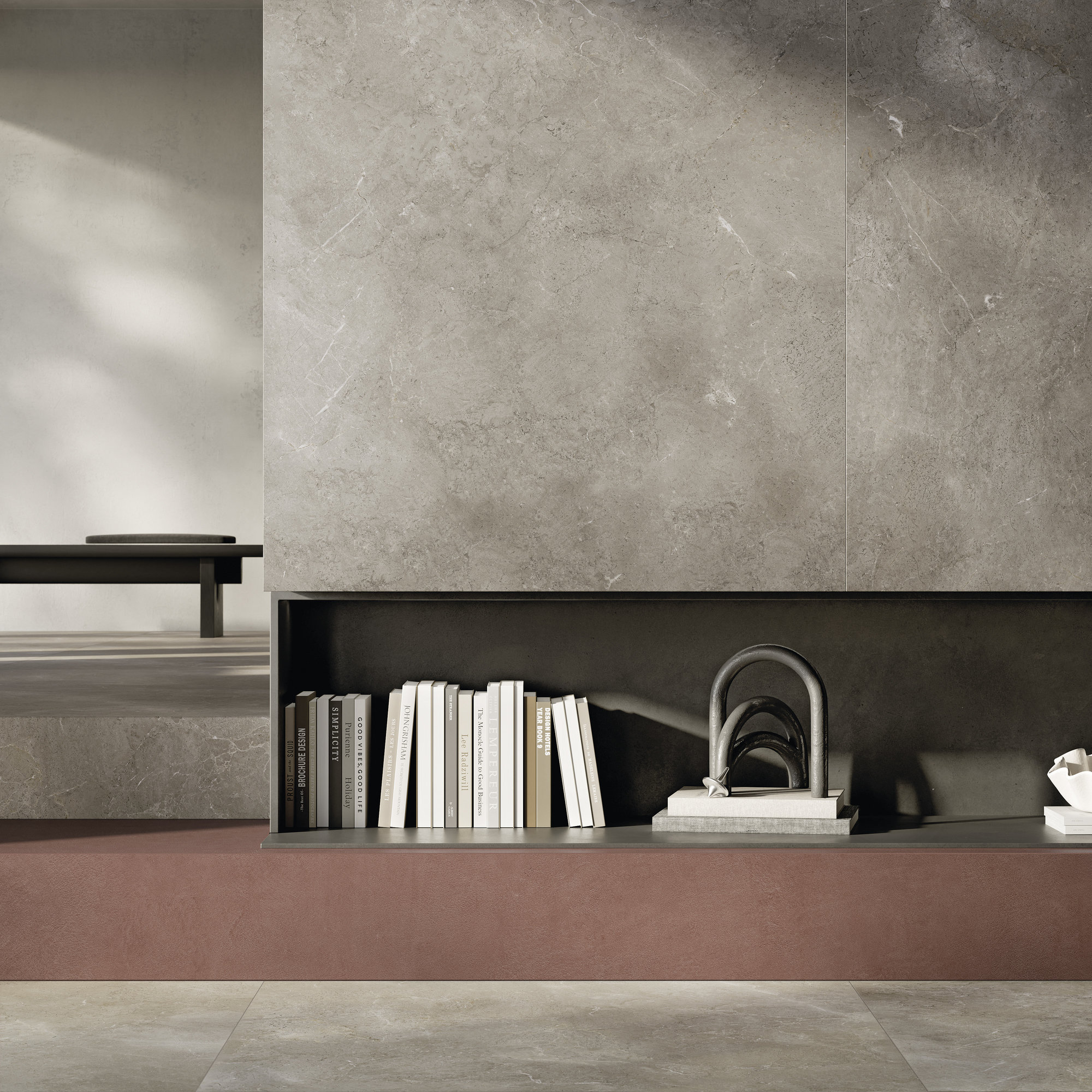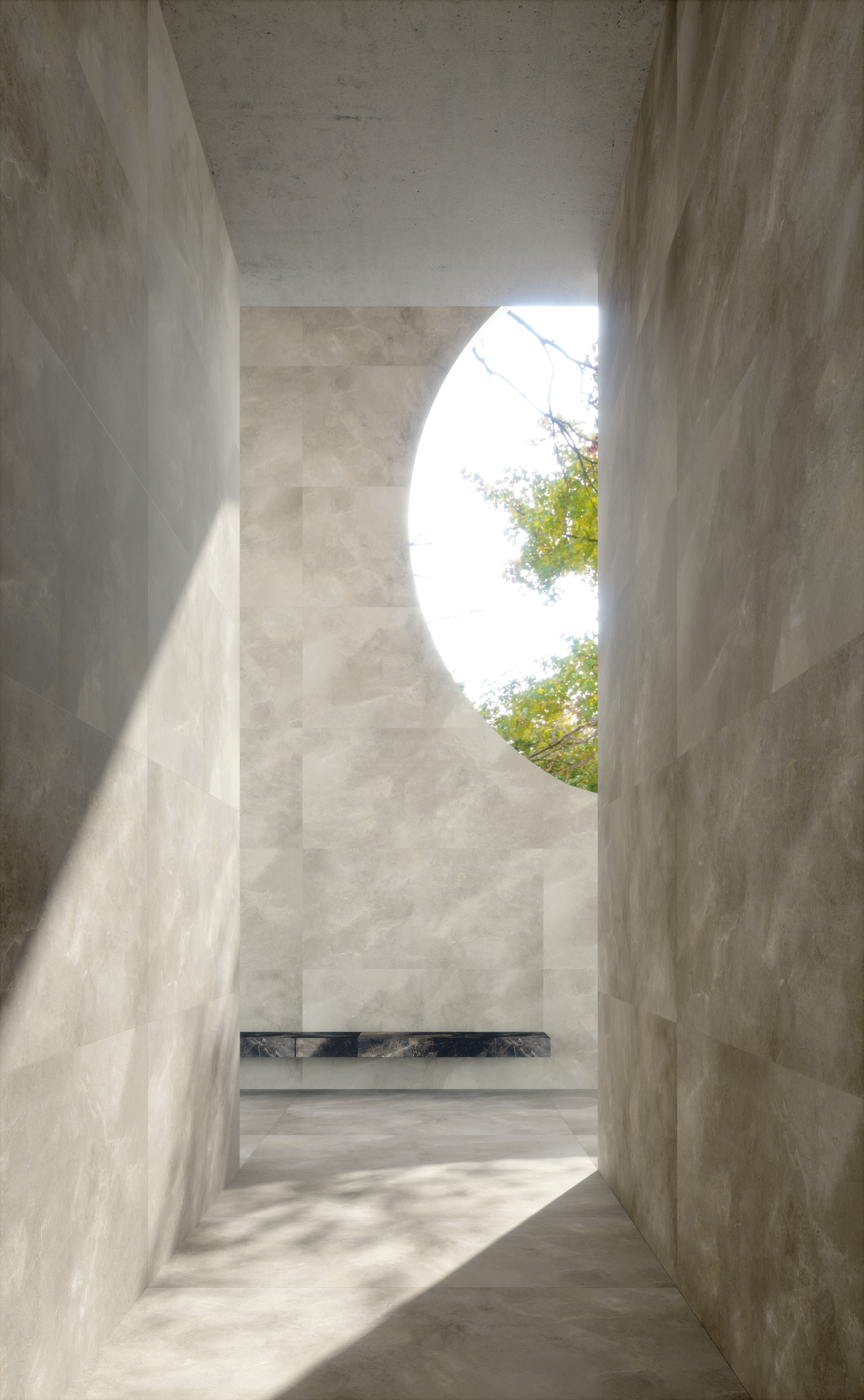 AION is the new Maximum surface that combines simple lines, design rigor and a sense of lightness. The intrinsic beauty of stone is revealed on porcelain stoneware through painstaking and masterly workmanship: a subtle look, with a minimalist character, which goes well with both classic and more elaborate textures. The series comes in three neutral shades - Black Aion, White Aion and Grey Aion – which blend together perfectly. The natural finish with matt effect enhances the texture of this material, making it look precious and revealing veins, nuances and all its charm. Relaxing shades, surfaces that convey a nice cozy feel, helping to create a unique and refined ambience. The wide choice of formats and sub-formats (300x150, 150x150, 150x75, 75x75, 75x37.5 cm) and comprehensive range of custom applications meet all design requirements.