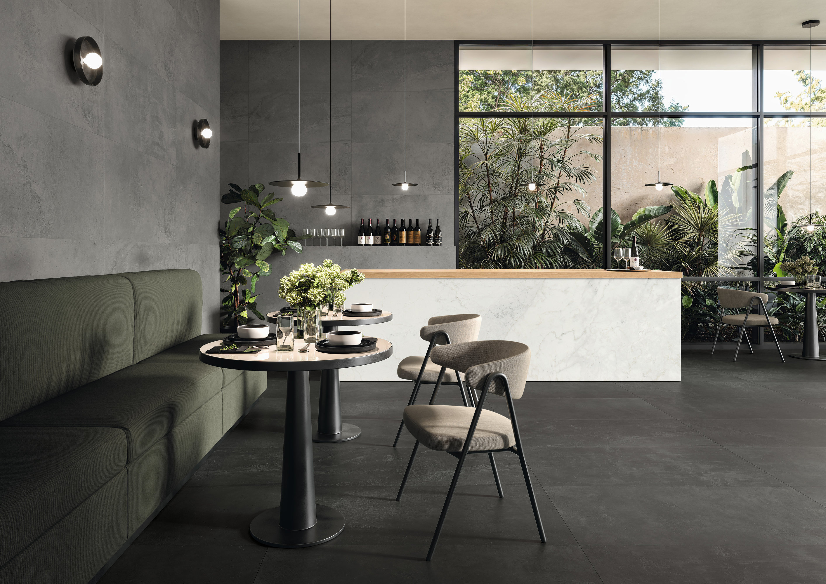 Core Shade is a complete range of ductile and durable ceramic materials suitable for any type of environment. With its hybrid look between concrete and stone, Core Shade allows mixing tones and modular formats for dynamic combinations and harmonious laying patterns. Additionally, Core Shade offers performance suitable for multiple applications thanks to the wide selection of formats and thickness options of 8, 11, and 20 mm.