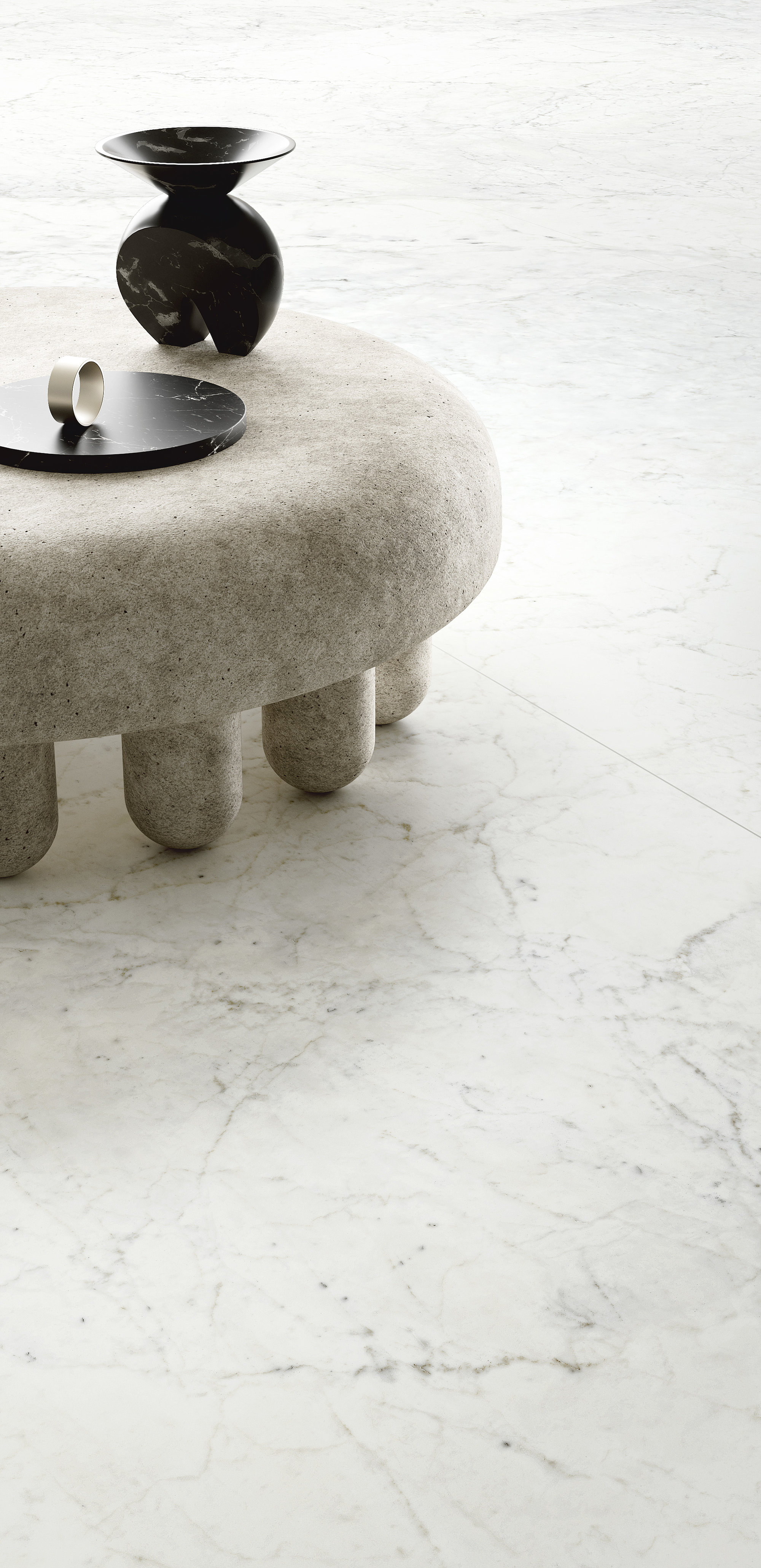 Apuano Purissimo Maximum is a ceramic surface of extraordinary elegance, enhanced by a unique brightness that makes it ideal for high-end projects. The white base, enriched with delicate light gray veins that softly fade into shadowed areas, imparts refinement and natural harmony. Available in Polished and Natural finishes, its large formats and reduced thickness make it suitable not only for floors, walls, and facades but also for custom furnishings and architectural elements.