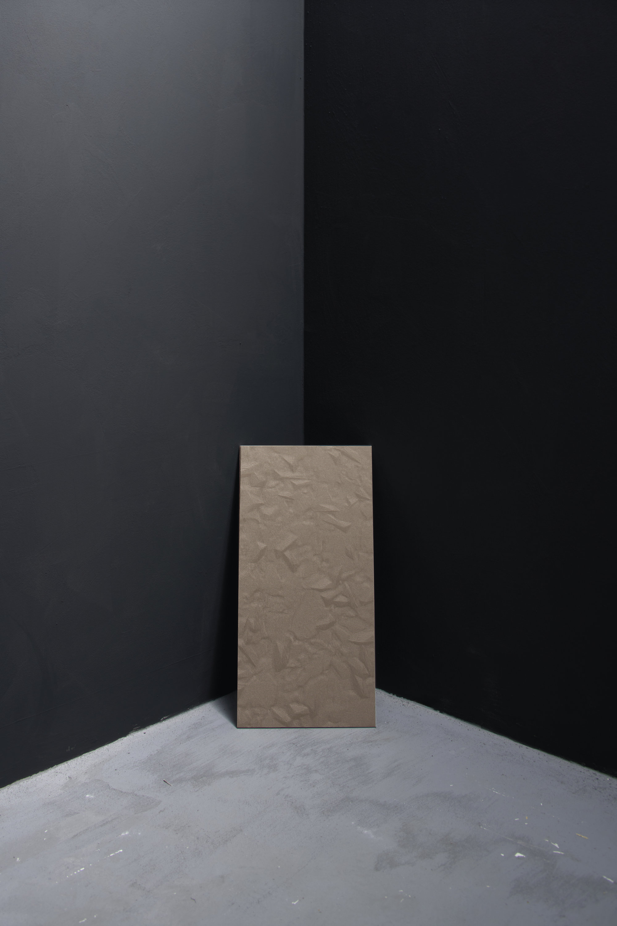 "A soft, earthy color with a noble appearance. A silky texture that evokes contemporary, high-end spaces. Mink is available in three different design options, each with patterns that enhance its luminous patina, allowing areas of denser or lighter pigment, reaching countless shades of brown: Paint, with its movements, reproduces a fresh, industrial trowel effect; Fold, with its irregular shapes, recalls delicately crumpled paper; while the Net grids mimic an interweaving of metallic threads and silky textures.
