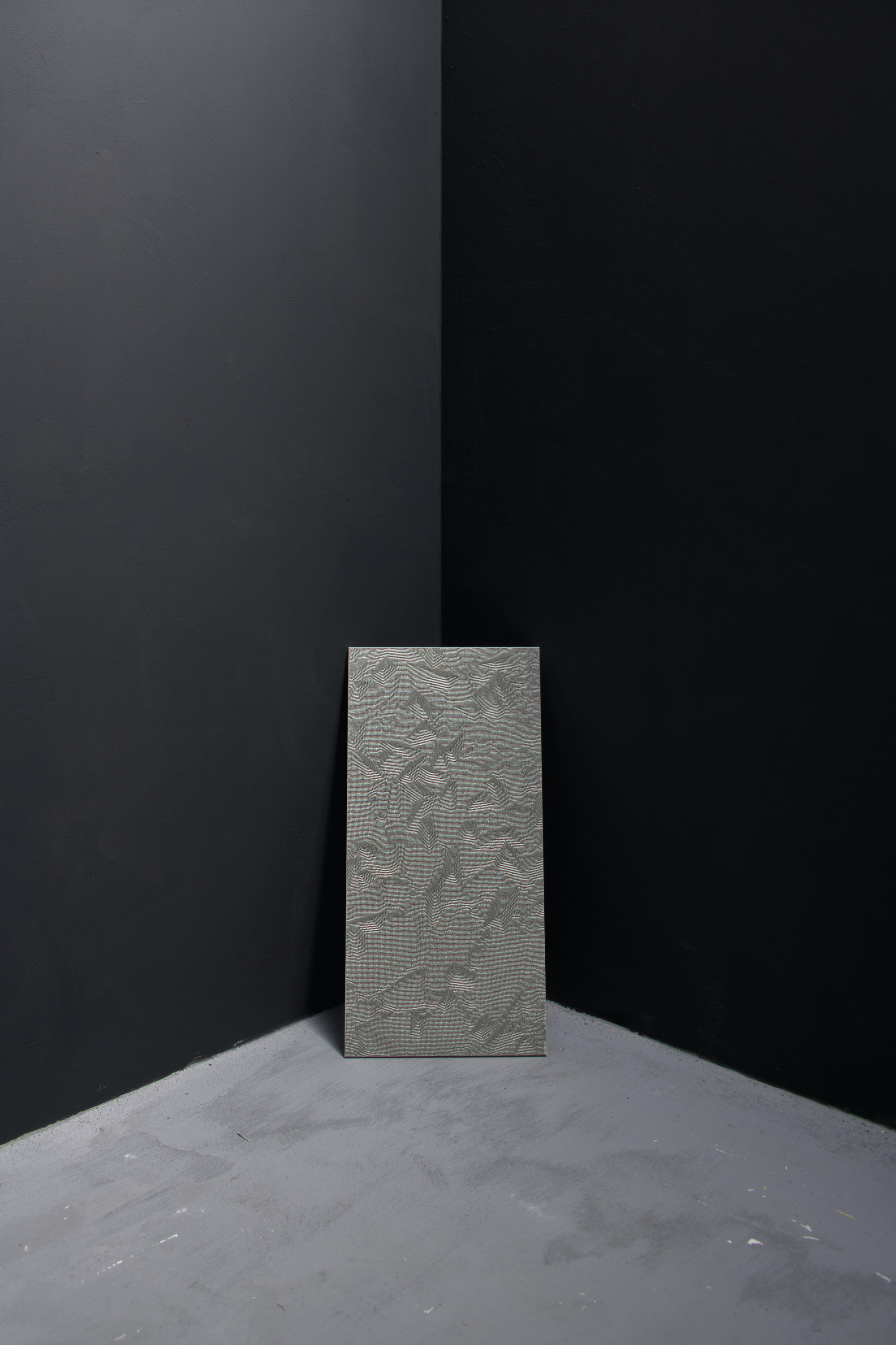 A dense, dark gray that changes its texture and shine thanks to the patterns of the laminated surfaces, sometimes appearing to solidify, sometimes to liquefy. The engravings, vibrant yet discreet, create subtle shadows that expand or stretch before fading into highlights, giving rhythm and boldness to the space. Shark is available in different design options that play across the surfaces with thickness, recesses, and reflected light: Paint, with its movements, reproduces a fresh, industrial spatula effect; Fold, with its irregular shapes, evokes delicately crumpled paper; while the Net grids mimic an interweaving of metallic threads and silky textures.