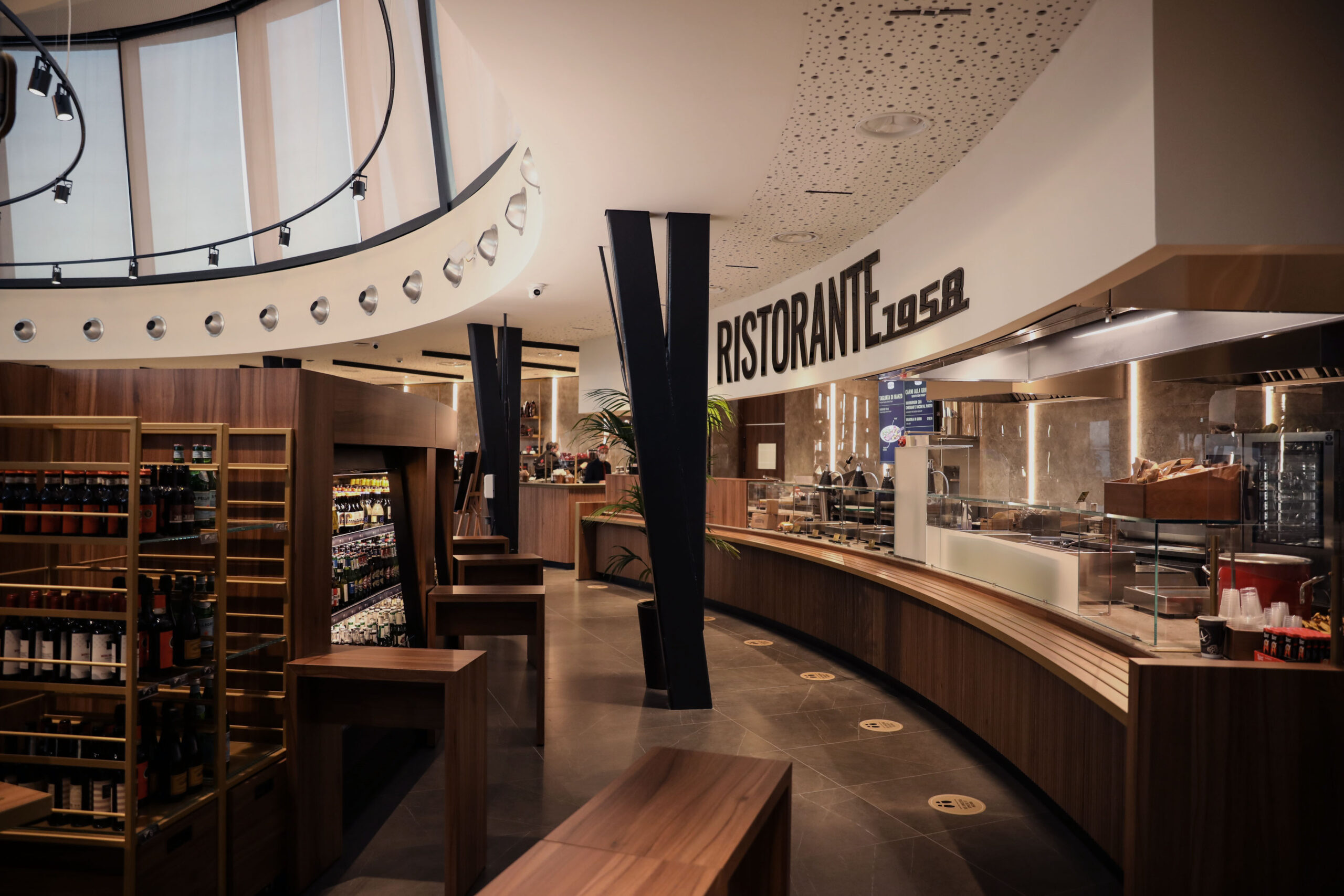 Autogrill Villoresi Ovest is much more than a service area: it is an icon of Italian motorway architecture, safeguarding a legacy of innovation and design. Designed in the 1960s, the building already embodied the ideals of modernity, lightness, and hospitality, with large windows, clean lines, and fluid spaces created for travelers.