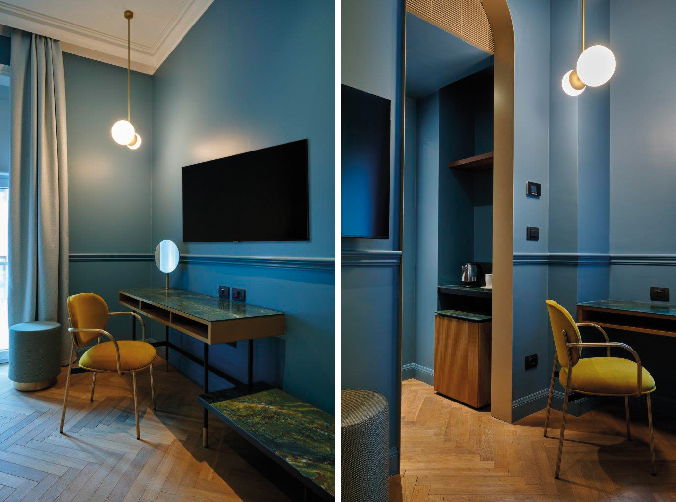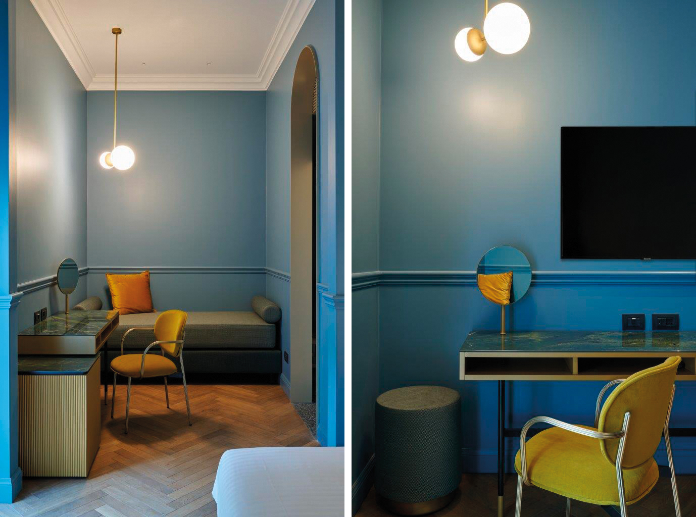 The renovation project of Hotel Berna in Milan was conceived to tell the story of the city through a dialogue between two fundamental architectural and design eras: the elegant early 20th-century architecture and the “epic” design of 1950s furnishings. This cultural combination celebrates Milan’s historical identity, reinterpreted in a contemporary key.