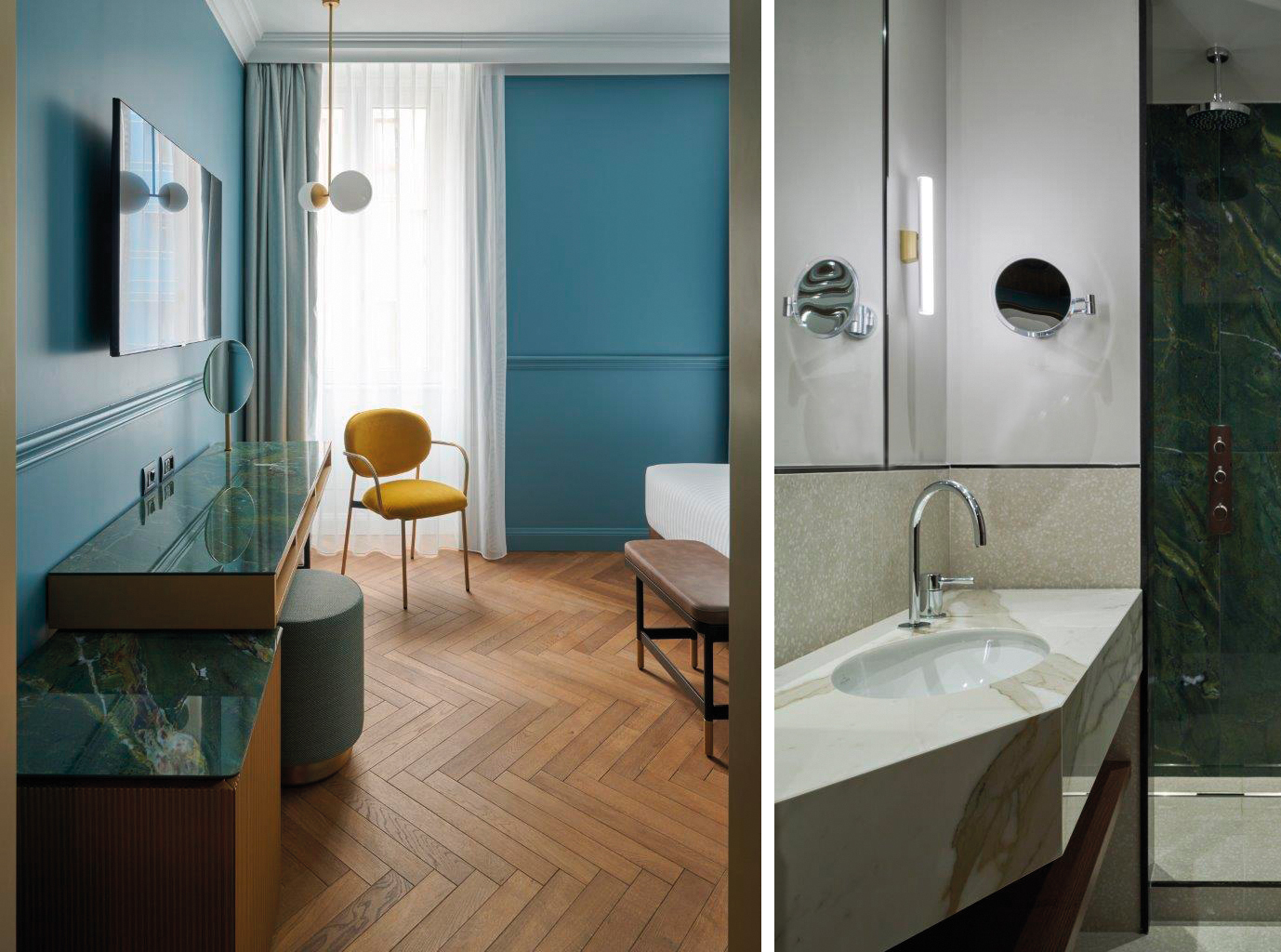 In particular, large-format porcelain stoneware floors and claddings enabled scenic effects, alternating modern slabs with more classic decorations. This approach combines refined aesthetics, functionality, and durability, creating an elegant, comfortable environment consistent with the hotel’s history and the city itself.