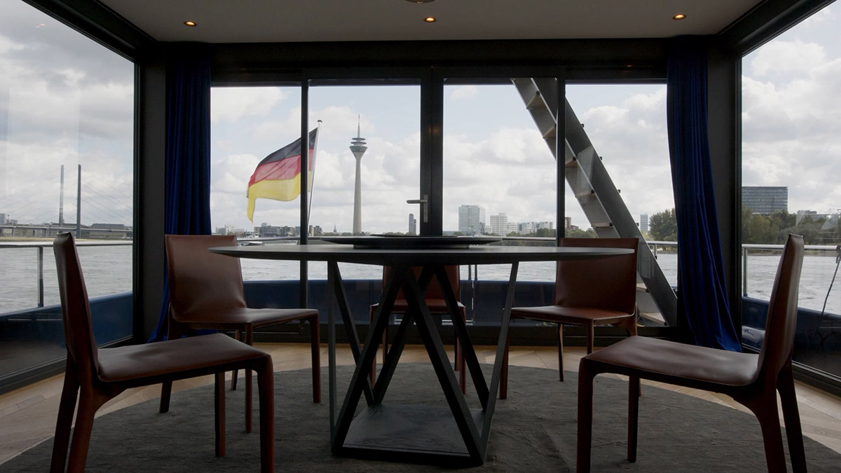 Designed using three shades of blue, this houseboat differentiates itself among all the others. Warm accents for the interiors and a gorgeous area dedicated to sauna and shower makes it very pleasant to use the ship all year long, even during the cold months in Northern Europe. The selection of the materials has been particularly difficult, requiring surfaces capable of withstanding the waves of the sea. For the same problem, it has been extremely important to use large sized tiles and have as few gaps as possible for a better water resistance and more easily deal with wave motion.