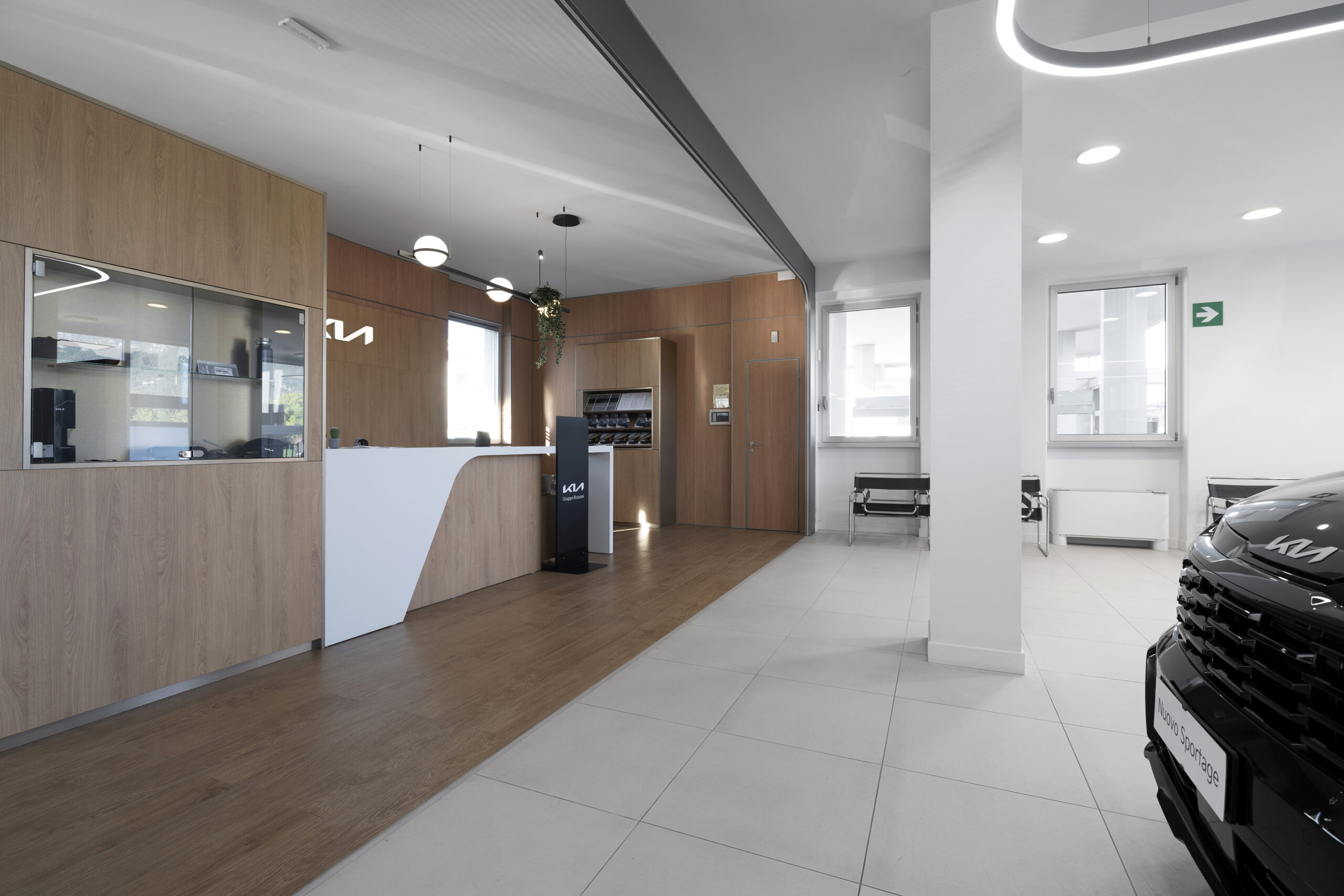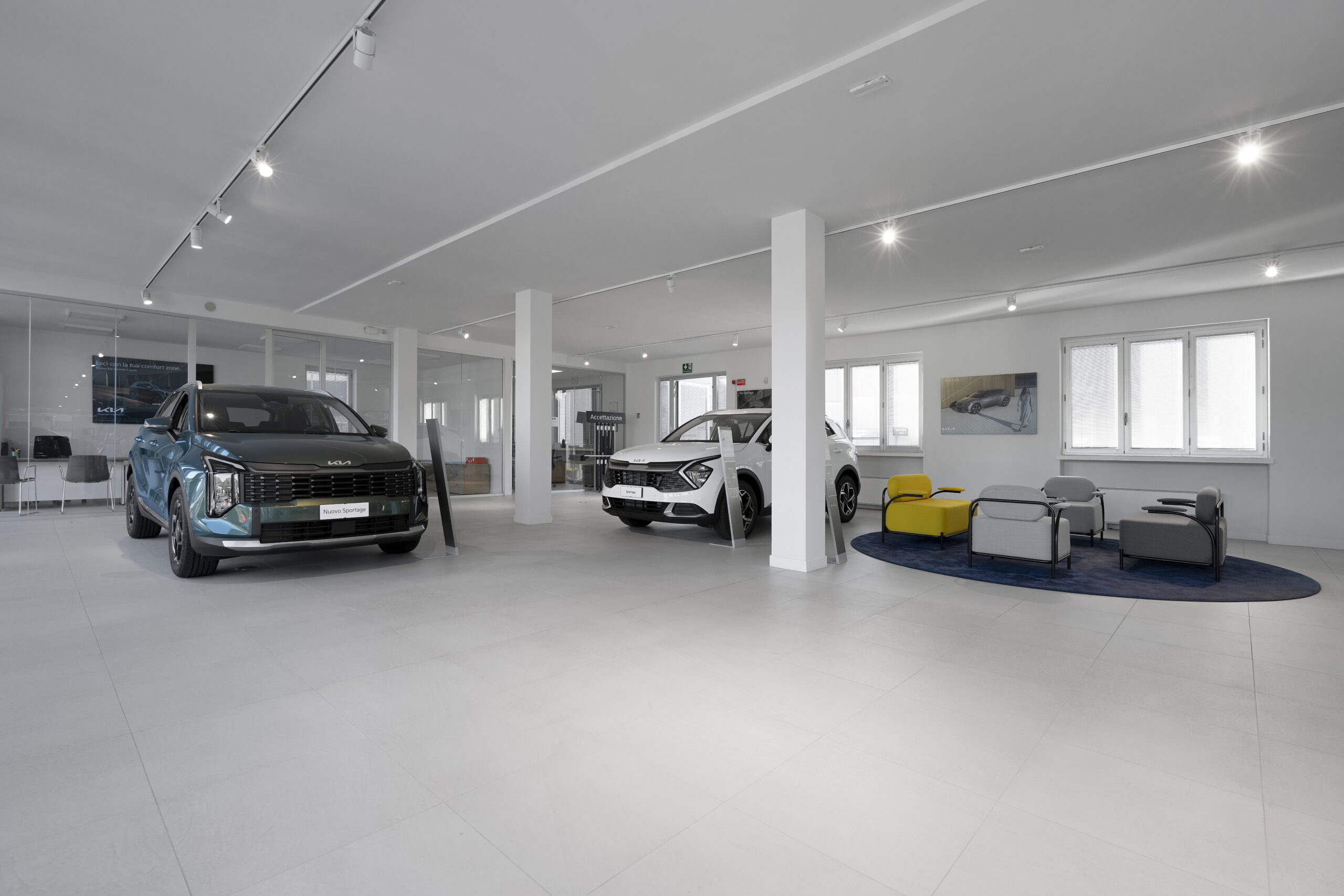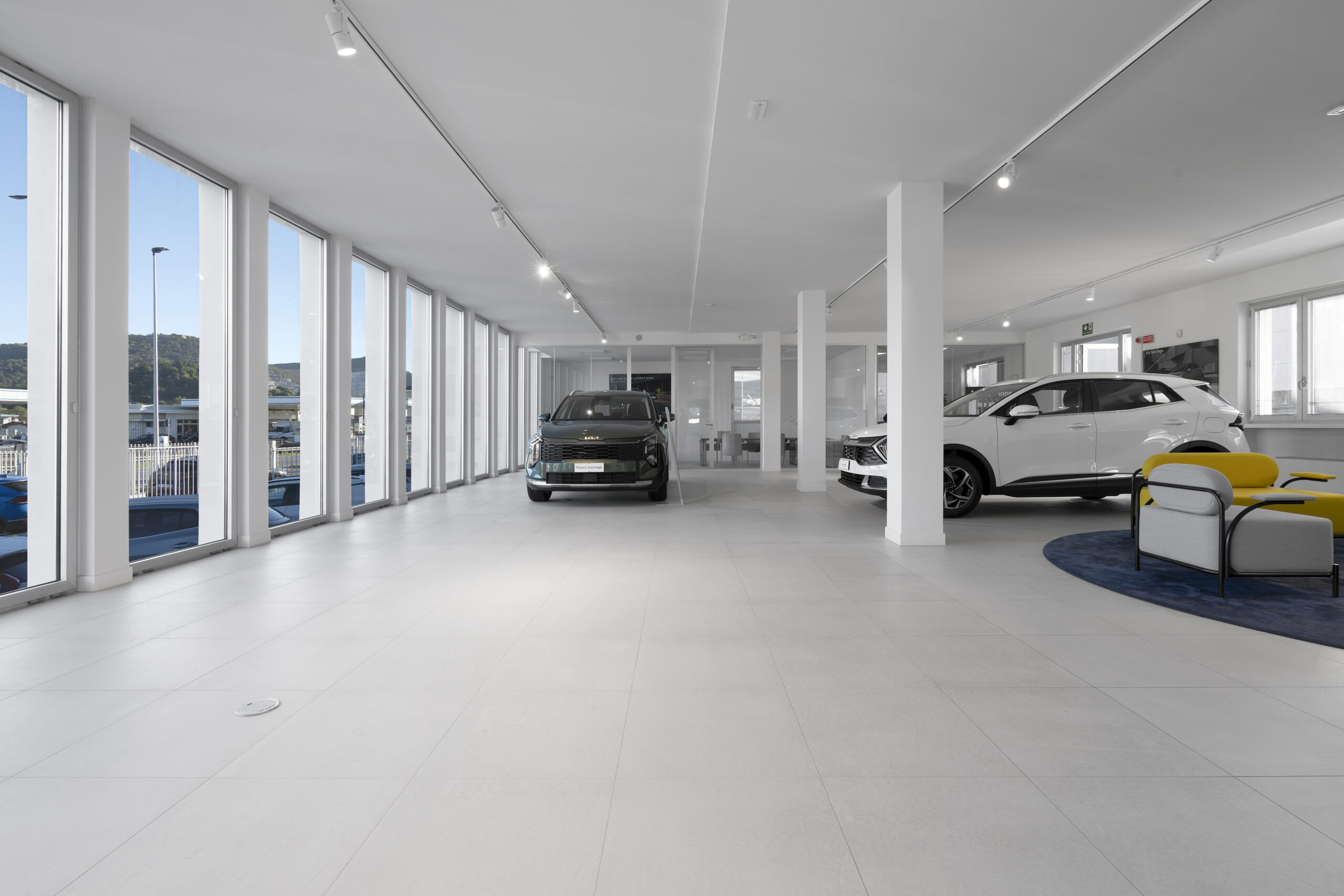 The new space is designed to offer a complete and refined customer experience, integrating a showroom, workshop, and after-sales area within a single modern and functional structure. A distinctive element of the retail concept is the use of Fiandre ceramics, which help to enhance the displayed vehicles, creating an elegant and sophisticated backdrop that highlights the lines and details of the cars. The goal is to make every visitor feel part of an exclusive, welcoming, and highly professional environment, where every element of the space contributes to showcasing the product.