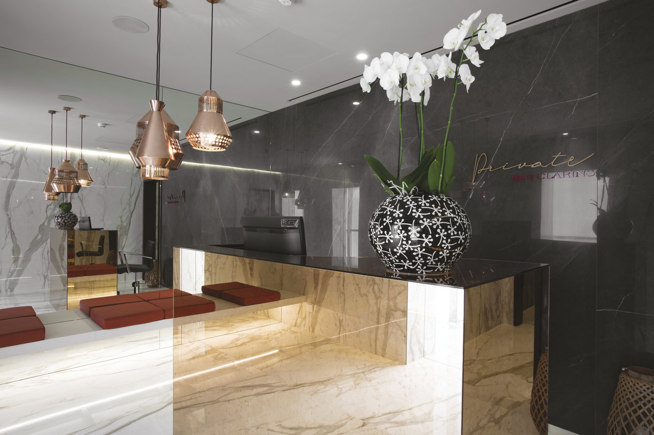 The pride and joy of the resort, the Spa is an oasis of peace and tranquillity where clients can rediscover health and beauty; a gem of delightful aesthetics and functionality designed to instil tranquillity, harmony and serenity. Each space is crafted to convey a different mood, thanks to precious coverings by Fiandre Architectural Surfaces, which are used to stunning effect on floors and walls.