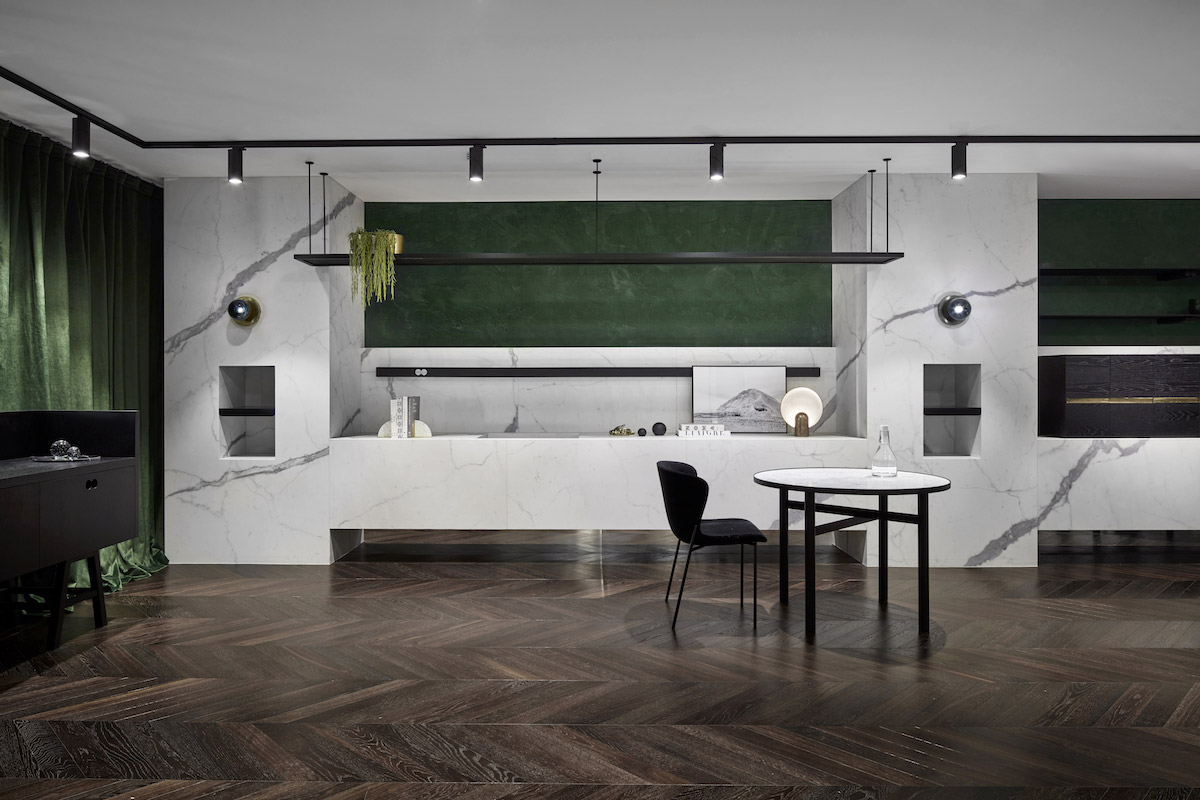 The classic features of Fiandre porcelain stoneware meet strength, lightness, and flexibility in the innovative 300x150 cm format.